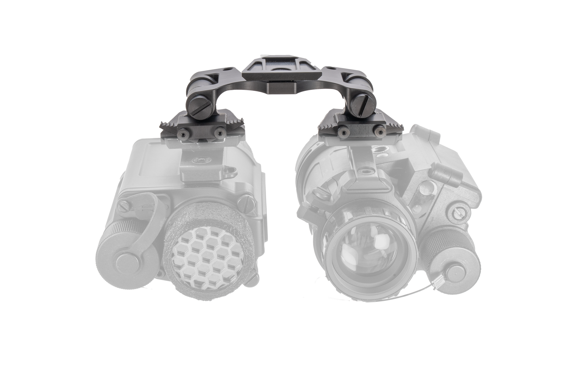 The bridge features articulation, enabling you to swing devices out of your line of sight or fold them back against your helmet. This ensures your gear stays secure, minimizes potential damage, and boosts maneuverability and comfort. Additionally, the bridge includes integrated and adjustable IPD stops (Inter-Pupillary Distance), guaranteeing that devices return to their original position when rotated back into place.