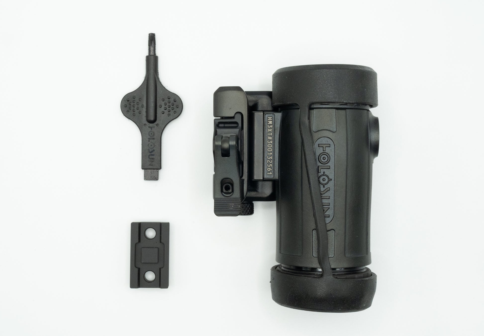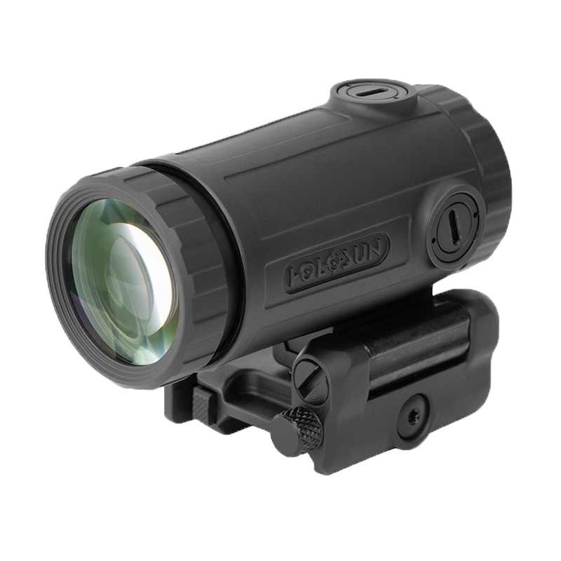 The HM3XT is a compact, titanium bodied, 3X magnifier designed for use in conjunction with a red dot sight. The HM3XT is feature-packed and includes a quick release, ambidextrous, flip-to-side Picatinny rail mount. Holosun includes a spacer with the HM3XT that provides compatibility with absolute and lower 1/3 co-witness dot heights for maximum compatibility. The HM3XT has a generous 2.75” of eye relief, is IP67 certified water resistant, and includes windage and elevation adjustment for precision zeroing to your optic’s zero. The HM3XT also includes a built-in flat driver tool for easy adjustments.