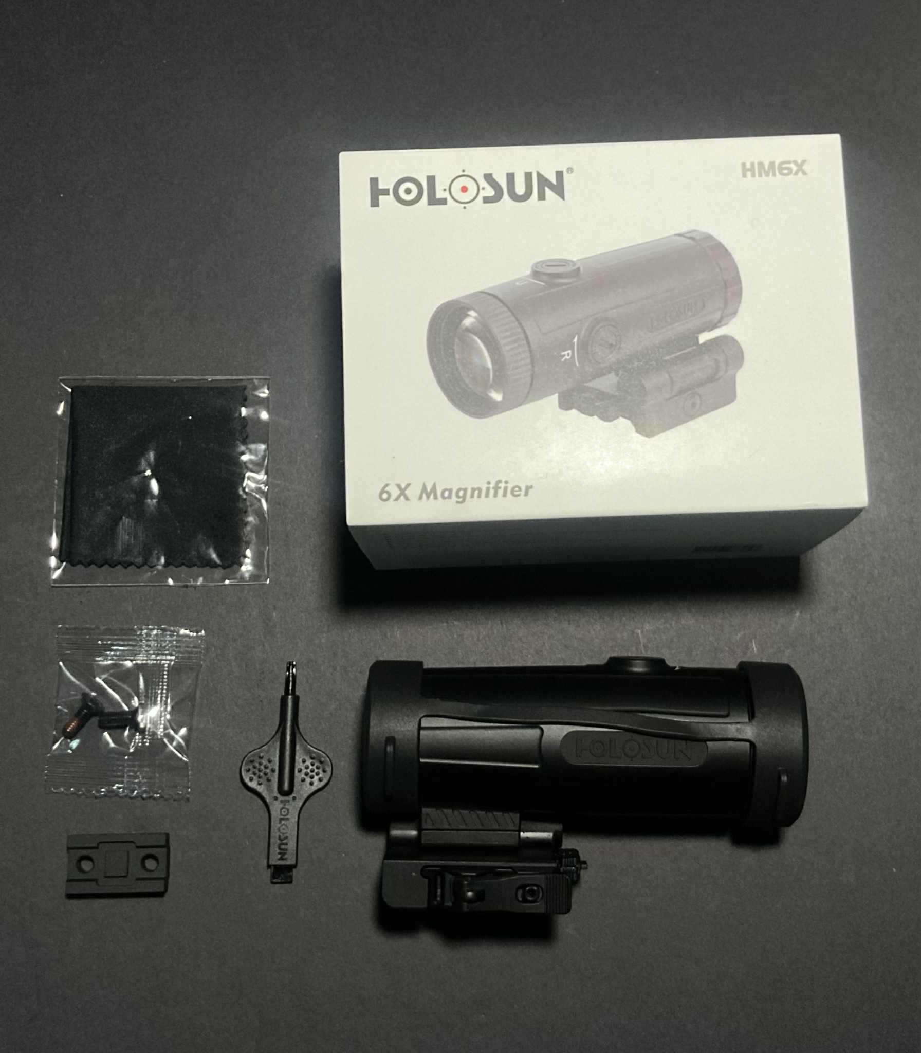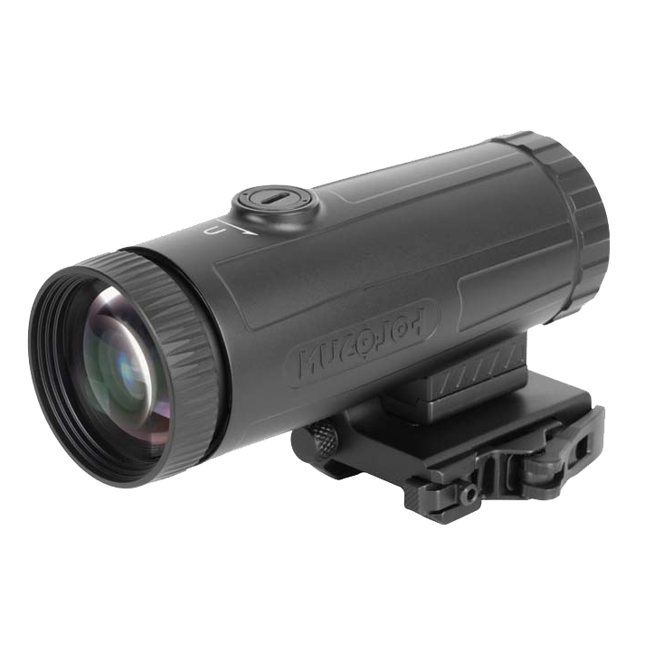 The HM6X allows for a seamless transition from no magnification to six times magnification and features an adjustable diopter switch for precise focus (+3 to -3), extremely clear glass, and generous eye relief. Mounting options include an integrated QD mount with a riser for absolute co-witness and lower 1/3 height optics. The HM6X housing is made of durable 7075 aluminum.
