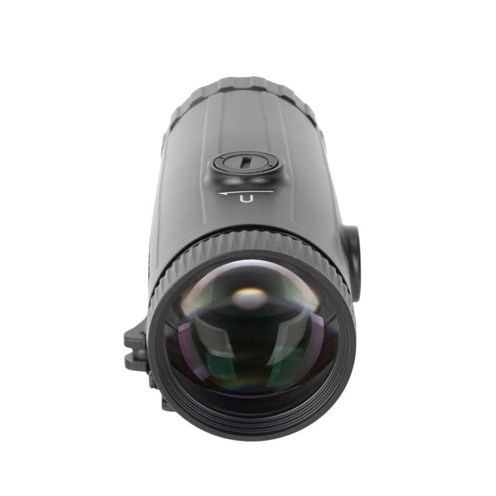 This magnifier with 6x magnification offers a wide field of view thanks to its clear front lens, a Flip-to-the-side design (for left- and right-handed operators), and diopter compensation. It’s especially suitable for mid ranges and when paired with a reflex sight.