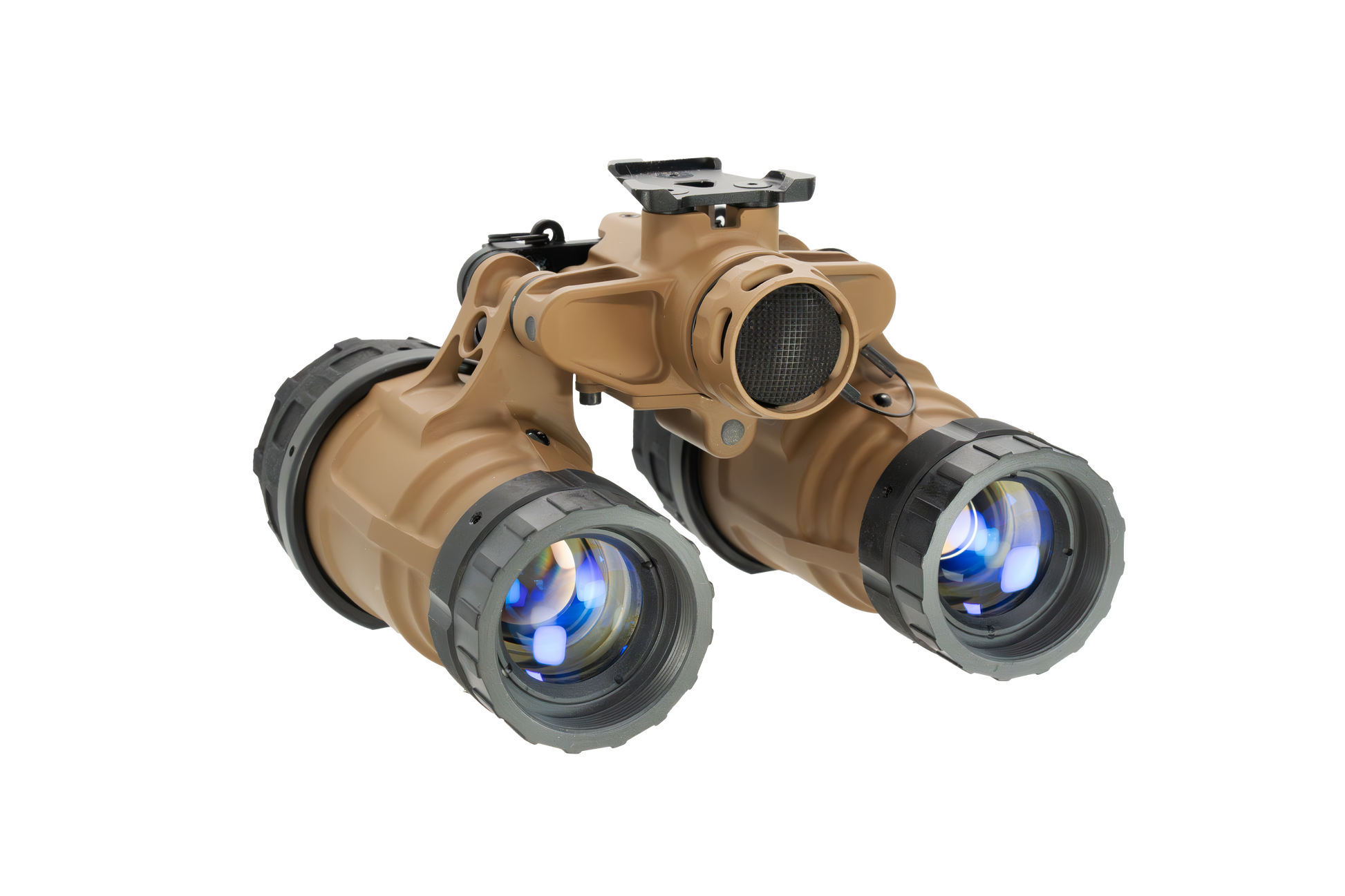 The Ultralight Articulating Night Vision Binocular (UANVB “Katana”) remains the lightest aluminum binocular on the market, with on board power, weighing in less than 425gram fully built with light weight optic. The articulating design allows for individual pod shut off, enabling the user to use one or both eyes while utilizing weapon mounted, non-passive aiming systems. End users will be able to mount and dismount vehicles easier with the low profile of the UANVB when stowed. The UANVB features the original Friction Lock Interpupillary Adjustment feature so you can set it and forget it with no additional tools. This unit may be lightweight but does not compromise strength as it exceeds MIL-STD-810G and had been drop tested beyond NATO or TOP standards (6 feet to concrete in 6 different orientations on a single device).