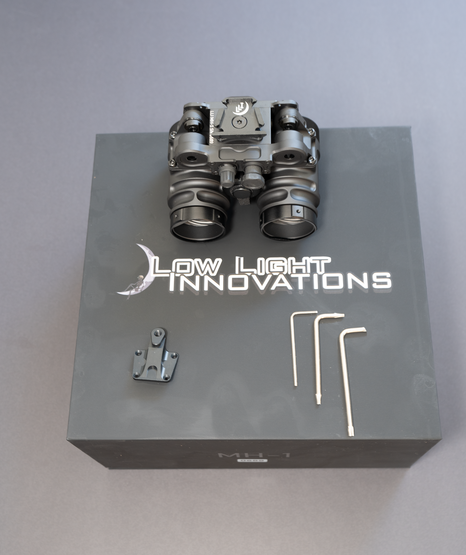 The MH-1 is the latest housing innovation at Low Light Innovations and the pinnacle of our housing line. Made in the United States. Crafted from aerospace-grade magnesium and titanium alloys, the MH-1 is a perfect blend of ruggedness and lightweight design, tipping the scales at just 15.3 ounces in its lightest configuration. The MH-1 is truly modular, allowing users to swap power supplies in minutes, choosing between CR123A, AA, and more. Its modularity extends to the ability to split the device into two monoculars using the new Modular Bridge System (MBS). What sets the MH-1 apart is its manual gain feature, which can be achieved via direct plug-in without any soldering, ensuring your tube's warranty remains intact.