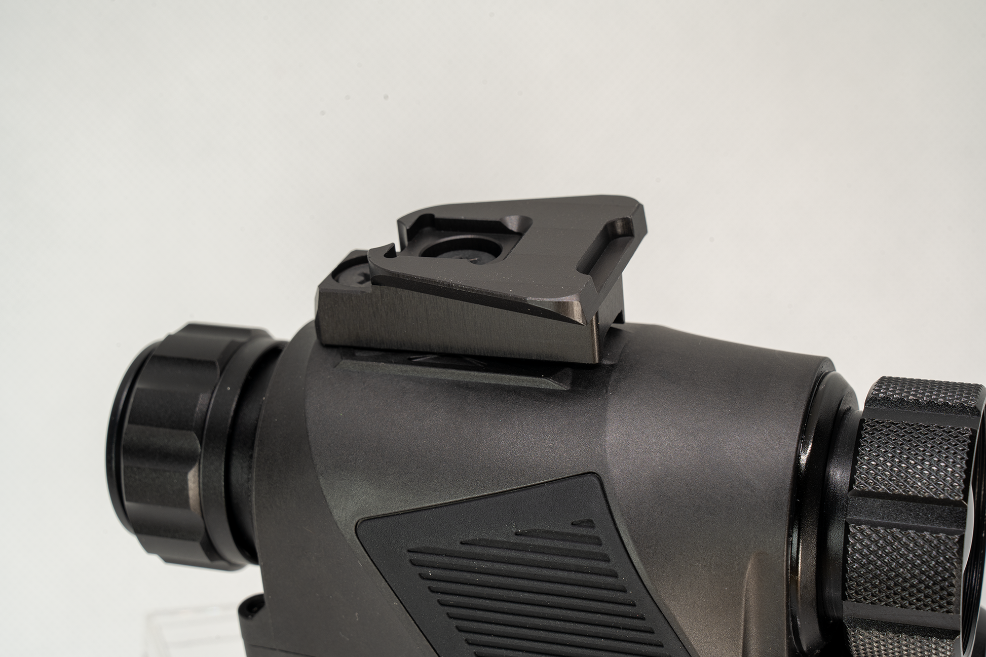 The QDA is a dovetail mount specifically designed for the Jerry YM to attach to the Wilcox Flip Mount, Falconclaw QDB, and QDF, as well as other bridges for night vision and thermal devices that use a dovetail mount. This design allow for quick detachment and swapping the thermal from helmet mounted position to weapon mounted.