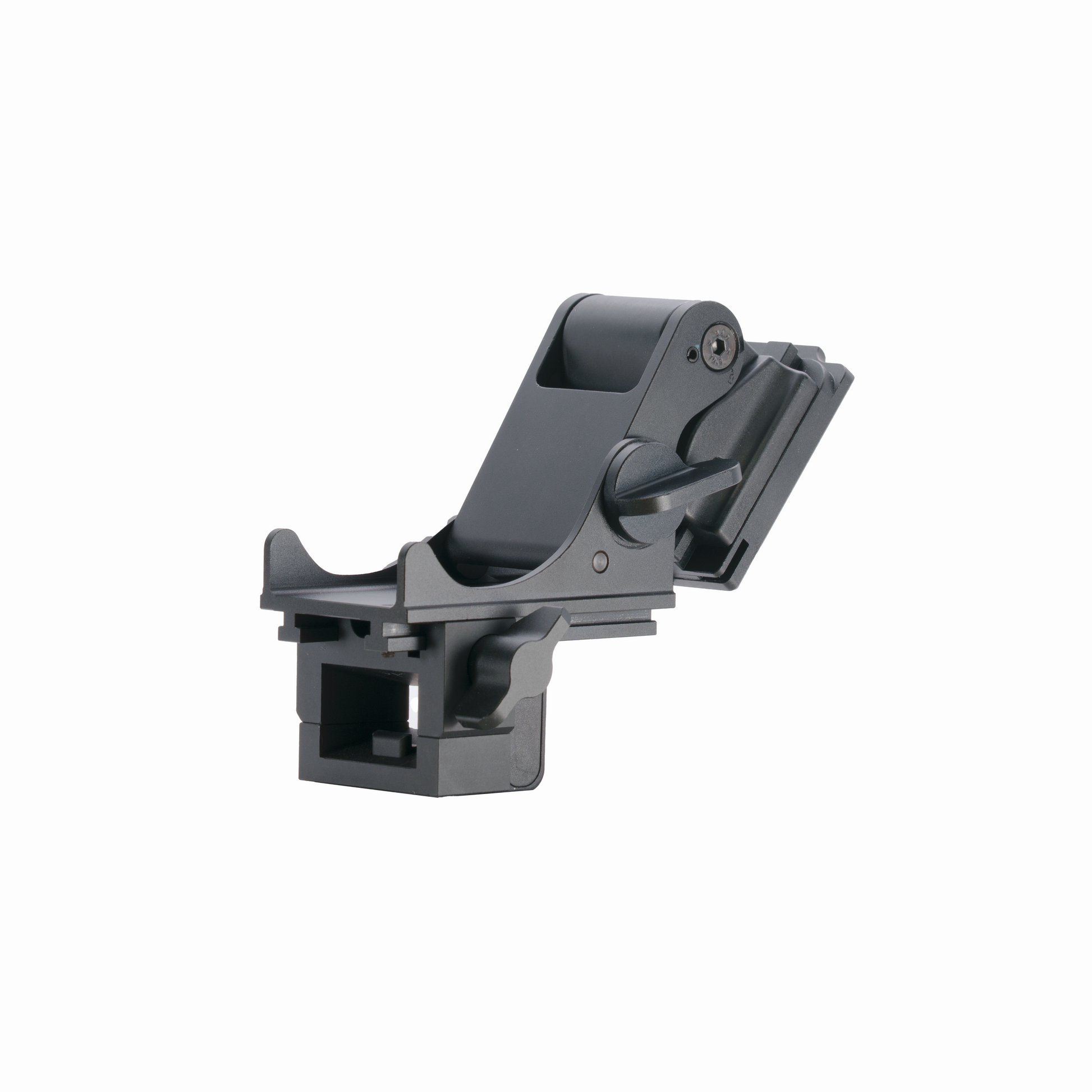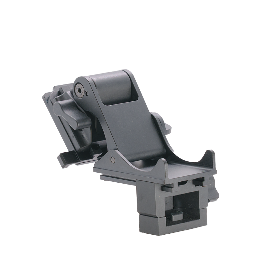 Built tough for hunting, airsoft, and night operations, it locks up tight with no wobble and folds away when not in use. Compatible with standard helmet shrouds like Wilcox and Norotos.