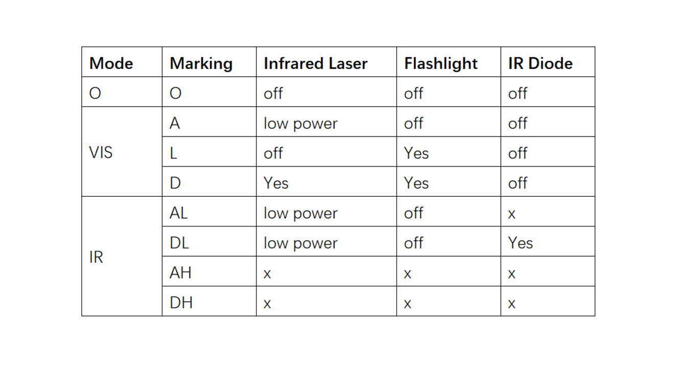 - 3 modes: Laser / Flashlight / Laser + Flashlight